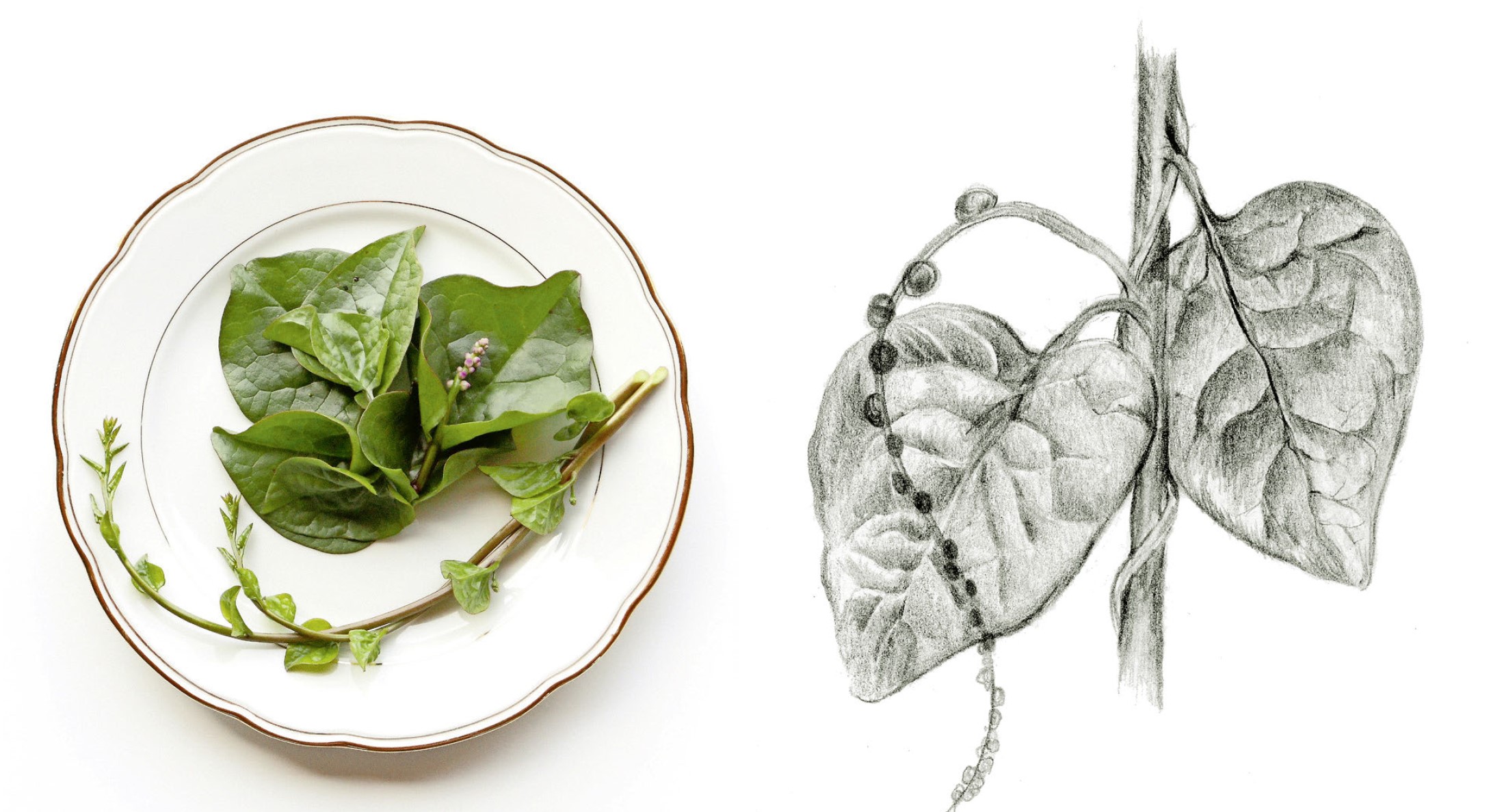 Es ist kein Zufall, dass Malabarspinat da und dort im Urban Gardening anzutreffen ist. Die Pflanze deckt verschiedene Bedürfnisse ab: Sie wächst leicht, sieht gut aus, hat dekorative Blüten und Früchte und schmackhafte Blätter. Letztere sind zudem recht nahrhaft, sie machen satt. Die Blätter sind leicht herzförmig und schmecken nussig-fleischig und irgendwie knackig. Man verwendet sie, ähnlich wie Gartenspinat, sowohl roh als auch gekocht. Da die Blätter fester sind als beim Gartenspinat, eignen sie sich auch zum Kurzbraten. Auf jeden Fall sollte man sie nicht lange kochen, weil sie sonst schleimig werden. Gekocht und püriert kann man Malabarspinat wie Gartenspinat tiefkühlen. Die Blätter können auch getrocknet und später als Tee oder zum Andicken von Speisen verwendet werden. Die kleinen Blüten eignen sich als (essbare) Tischdekoration. Die leicht säuerlich schmeckenden, schwarzen Beeren sehen giftig aus, sind es aber nicht. Sie können ebenfalls gegessen werden, allerdings stört das harte Samenkorn den Genuss. Deshalb werden die Beeren meistens für Saft verwendet. Kaltgepresst ist der violette Saft so unglaublich farbintensiv, dass einem Randensaft dagegen wie ein blasses Wässerli daherkommt. Die Zugabe von Zitronensaft verstärkt die Farbintensität