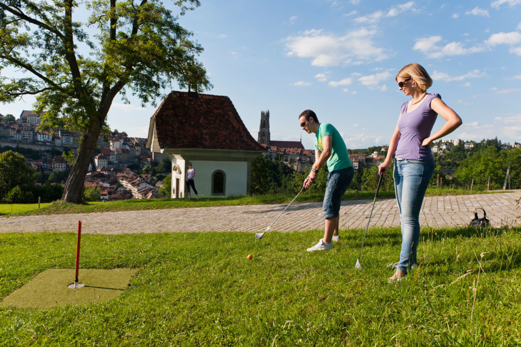Seit elf Jahren bietet Freiburg Tourismus Stadtgolf an, eine sehr familientaugliche, spielerische Art und Weise, die Stadt zu entdecken. Der Parcours mit 18 Löchern führt vom Zentrum via Standseilbahn (Funiculaire) in die Unterstadt, wo alte Holz- und Steinbrücken überquert werden. Minigolf, angereichert und neu definiert.