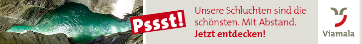 Wenn die Viamala einst ihrem Namen «schlechter Weg» alle Ehre machte und während Jahrhunderten gefürchtet war im alpenquerenden Verkehr, dann genau an dieser Stelle, hier am Besucherzentrum Viamala Schlucht. Über Jahrtausende frassen sich Gletschereis und die Wasser des Hinterrheins durch den Felsen. Heute führen 359 Treppenstufen hinab in die schaurig schöne Tiefe des Naturmonuments. Bis zu 300 Meter hohe Felswände ragen in die Höhe, Licht und Wasser zaubern schönste Farbenspiele. Faszinierend, die vielen Strudeltöpfe, diese runden Felslöcher mit bis zu 3,5 Meter Durchmesser. Für die jüngsten Besucher wartet ein spannendes Abenteuer, die Viamala Schatzsuche: Kids (besonders geeignet zwischen 7 und 12 Jahren) lösen spielend die Schatzsuche-Aufgaben.