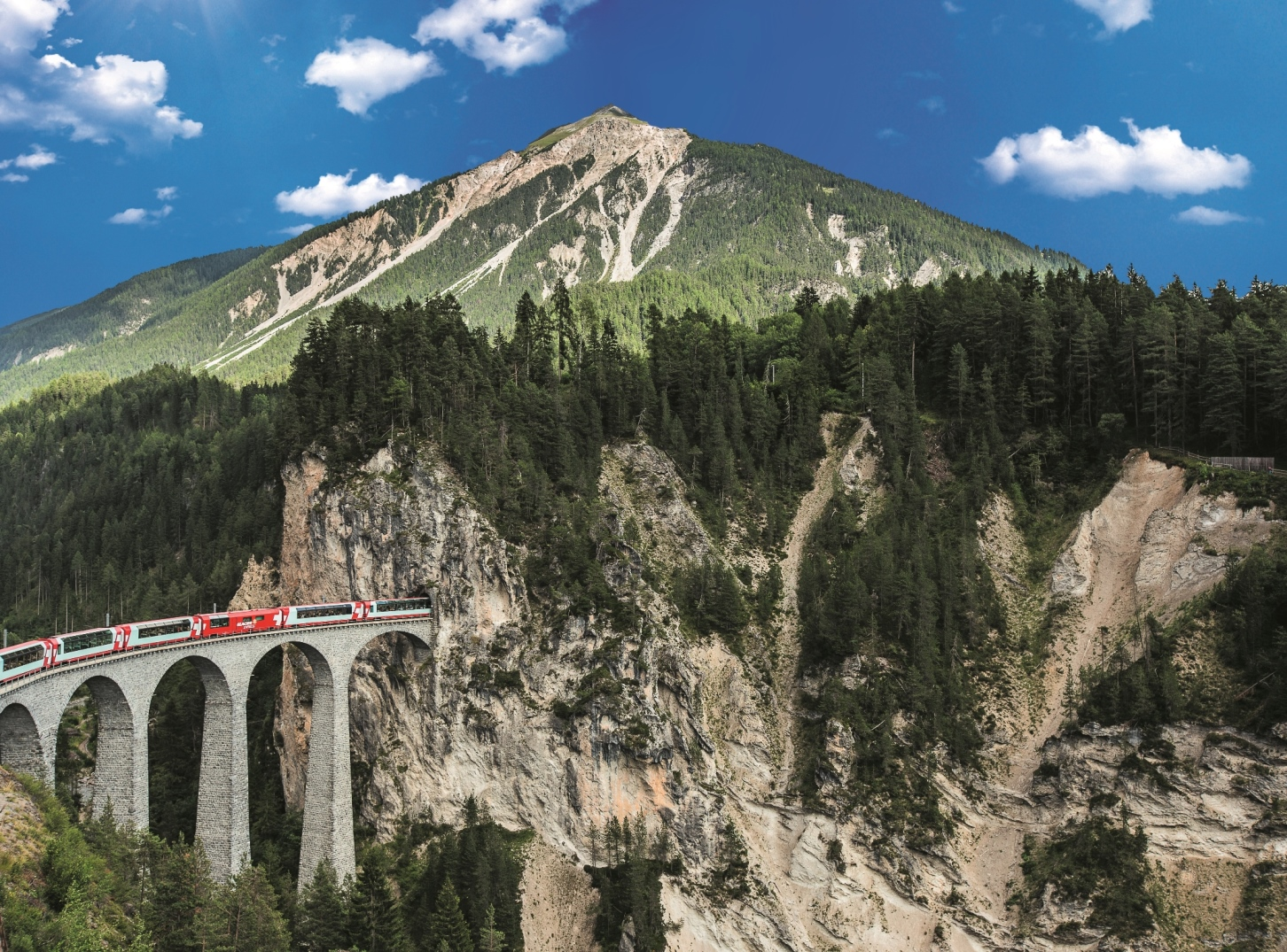 Mit der Rhätischen Bahn durch das UNESCO Welterbe: zuerst über die Albulaline von Thusis bis St. Moritz und dann im Bernina Express bis Tirano. Und zum Schluss mit dem Bernina Express-Bus bis Lugano. Seit 2008 gehören die Albula- und Berninalinie der Rhätischen Bahn zum UNESCO-Welterbe. Die Strecke ist die höchstgelegene Alpentransversale Europas. Sie verbindet unterschiedliche Kulturen und Sprachen dies- und jenseits der Alpen. Erleben auch Sie die aussergewöhnliche Streckenführung – insgesamt fahren Sie auf der Albulalinie über 144 Brücken, durch 42 Tunnels und Galerien und auf der Berninalinie über 52 Brücken, durch 13 Tunnels und Galerien. Darunter auch über Paradestücke der Baukunst wie zum Beispiel das 65 Meter hohe Landwasserviadukt bei Filisur oder das einzigartige Kreisviadukt bei Brusio.