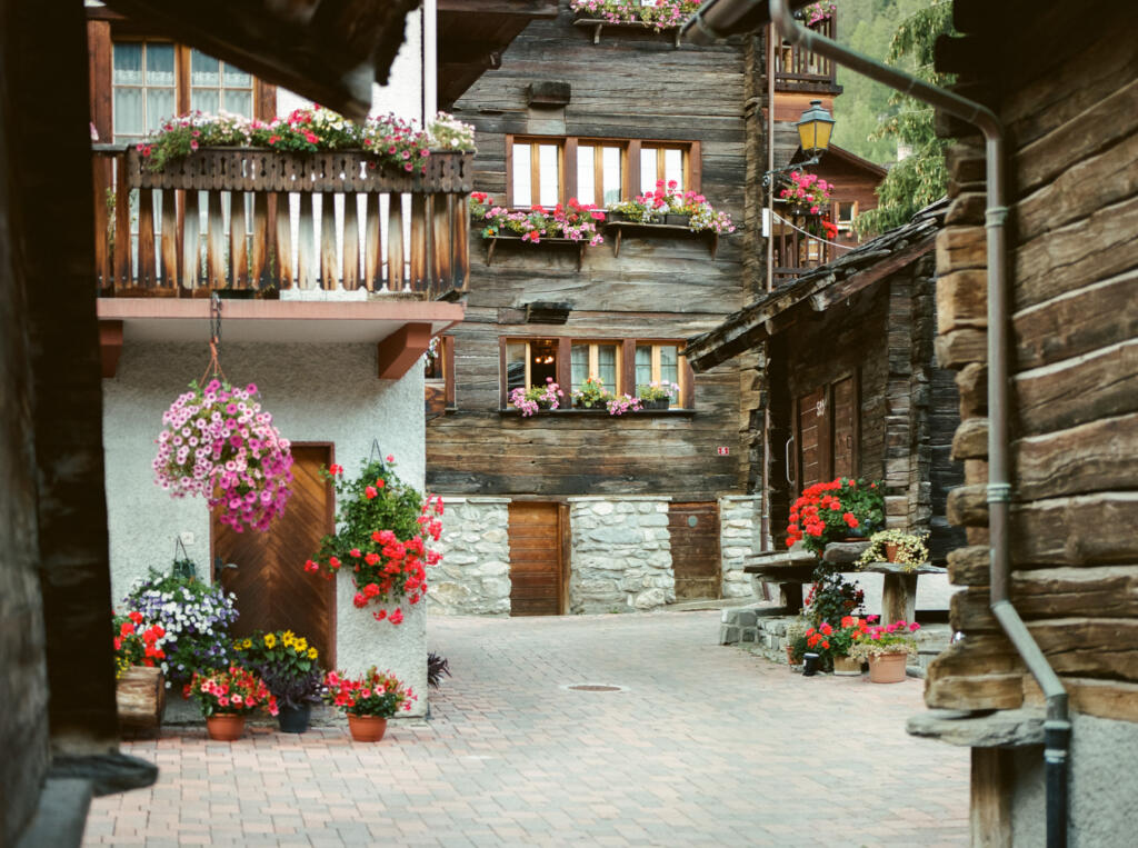 Auffallend schön in den gut erhaltenen Dörfern sind die Gebäude. Wie es  heisst, war der Bau das Werk von drei Generationen: Der Grossvater bereitete das Holz vor, der Vater machte die Bleiche und baute die Arche des Hauses zusammen und der Sohn stellte es fertig, um darin zu wohnen. Fünf Dinge brauche man, um zu bauen, sagten die Ältesten: gute Freunde, einen guten Geldbeutel, einen guten Keller, ein gutes Maultier und einen guten Dachboden. Wer etwa durch das noch ursprüngliche Lannaz bummelt, erkennt unschwer, dass all die baulichen Weisheiten beherzt wurden. Die noch authentischen Wohnhäuser, Scheunen, Ställe aus Lärchenholz, liebevoll restauriert und mit Blumen geschmückt, stammen aus dem 17. bis 18. Jahrhundert, die Ringstruktur der Anlage könnte somit auf das Ende des Mittelalters zurückgehen.