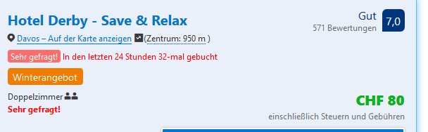 Das gefällt uns, da scrollen wir weiter. Unser angepeiltes Ski-Weekend ist in Davos, und bei genauerer Betrachtung des Bildschirmes stockt uns gleich der Atem: